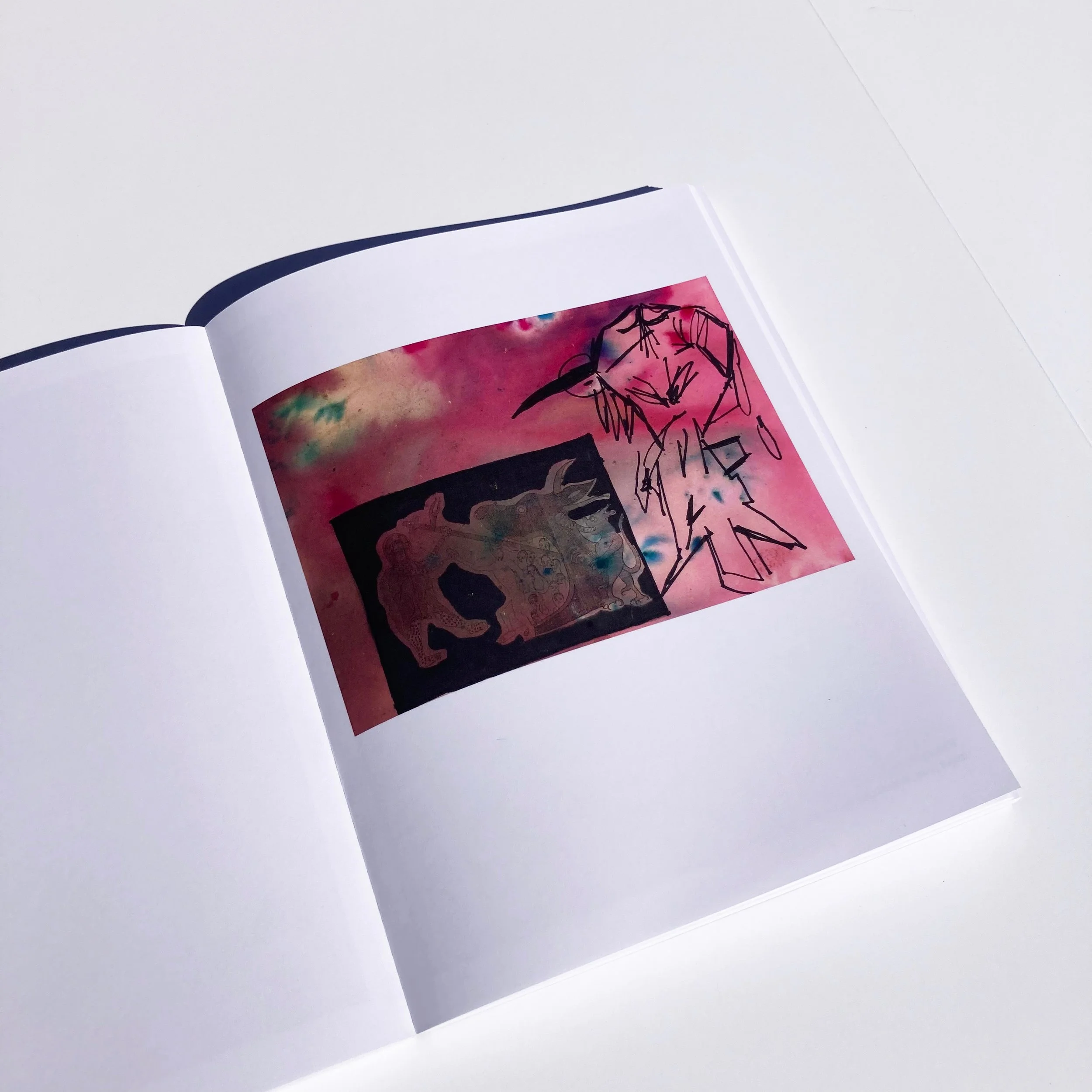 Holden is constantly drawing when he’s not in the studio painting. He created the book, Sun Run, a collection of 150+ works on paper made over several months from 2022-2023. All works are 8.5”x11” and 7”x10”. Using found images and photos taken by the artist, he used dye to treat the paper then run them through his home inkjet printer, finishing them off with his intuitive mark making, usually with a black sharpie. His expression of new ideas and inspiration stems from counter culture, psychedelics, classic films, death, music and the graffiti found on the streets of Los Angeles. More about Holden Fuller