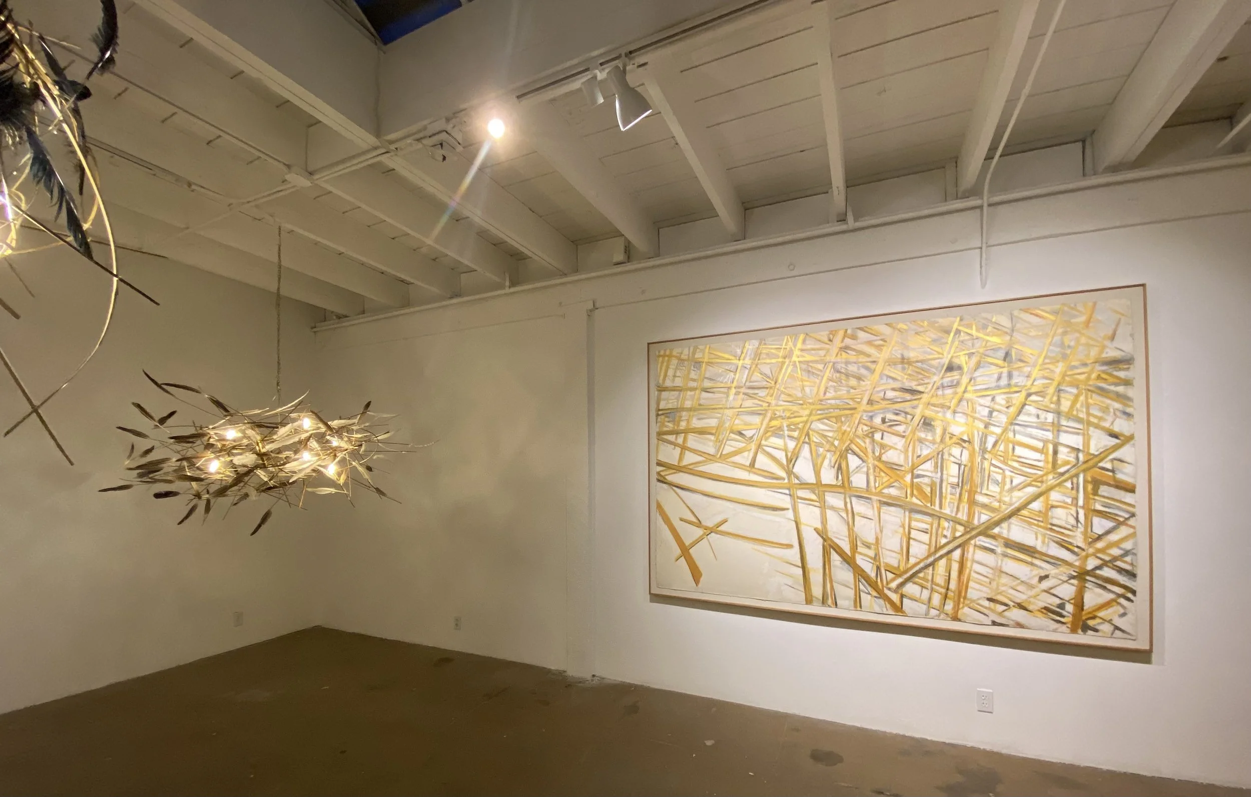 In a new site-specific installation and a series of aerial and kinetic sculptures, drawing, prints, and hovering chandeliers, Glassman takes up the feather as his muse. From the serenity of the floating glide to the anxiety of being blown away and lost, the hand-built material wonders were, says Glassman, “first sparked as an inquiry into concepts of collapse and migration (Of species, peoples, atmospheres…) They embody frailty and hope, chaos and control, construct and gesture, darkness and light, collapse and resilience.” - writes Los Angeles art critic Shana Nys Dambrot, 13 Things LA