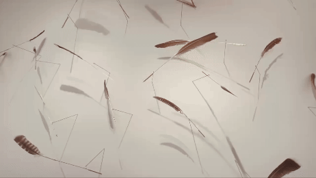 “Each and every feather piece is conceived as a contribution to a single tumbling swarm of feathers in a global wind. It is a conceptual and ongoing site specific project celebrating our shared atmosphere and our universal vulnerability as human beings.