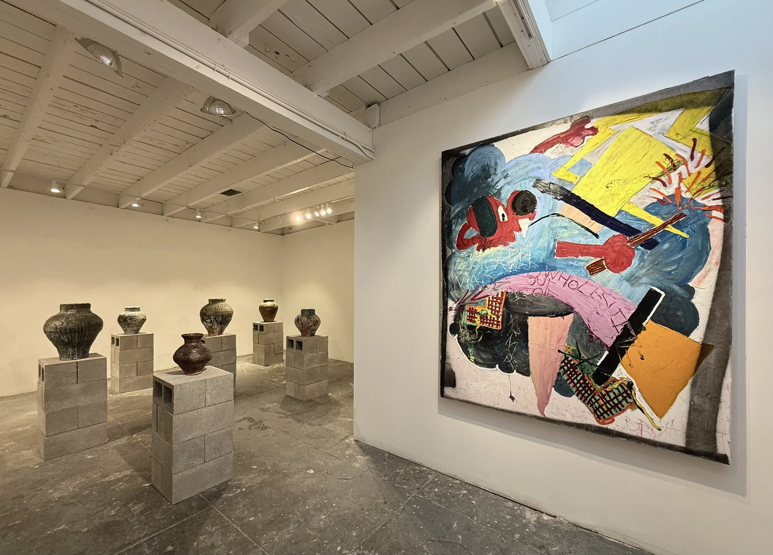 This collection marks Vanderlip's first solo exhibition featuring his wryly confessional"self-portrait" dog paintings, meditative floral paintings and sculptural multimedia collages, alongside a series of hand-coiled jars and mugs, fired in a wood kiln he built himself. In total this exhibition showcases a comprehensive view of his diverse artistic practice.